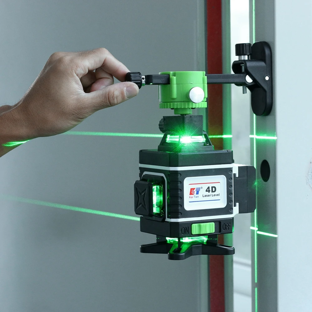 KaiTian 16 линий 4D лазерный уровень самонивелирующийся 360 горизонтальный и вертикальный крест супер мощный 360 Кронштейн зеленый лазерный уровень батарея