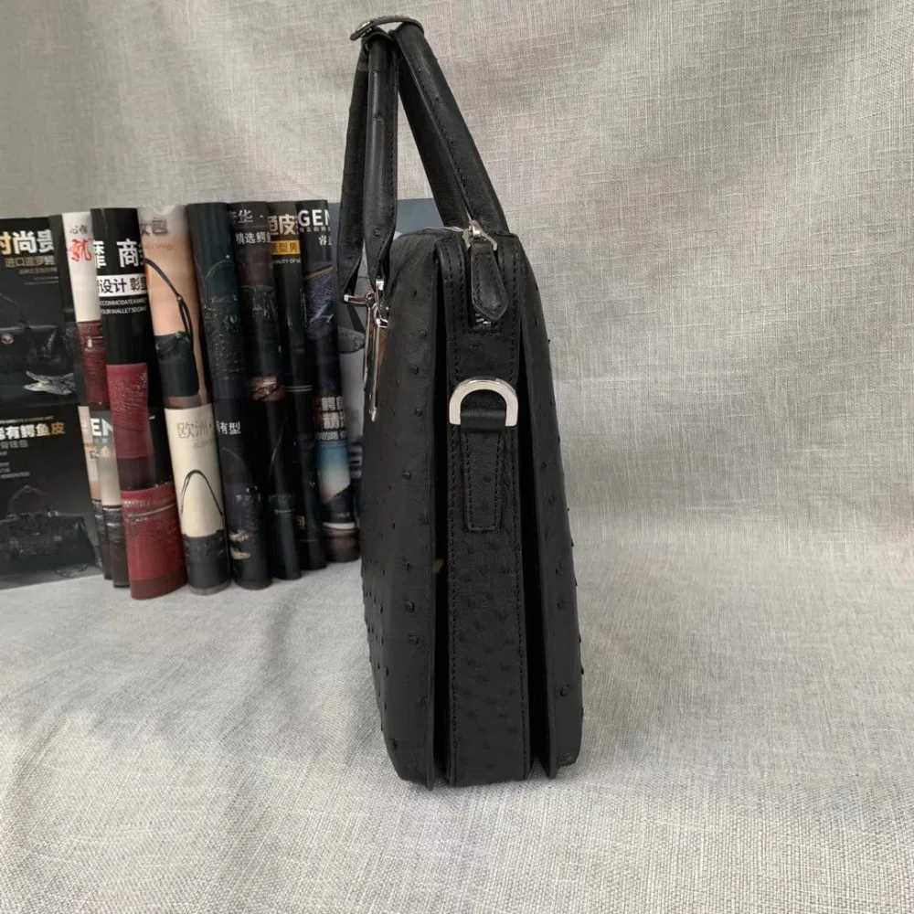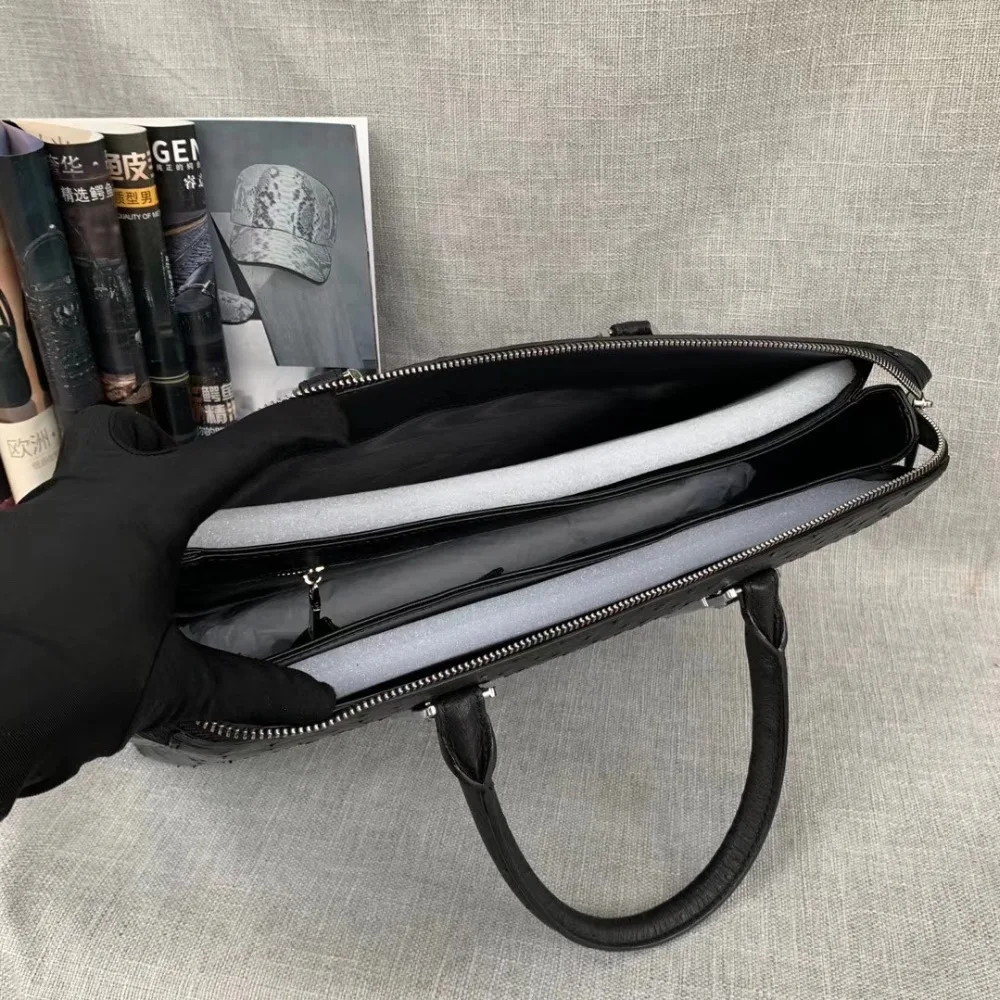 Оригинальный экзотический кожаный мужской большой деловой короткий чехол из страусиной кожи, черный чехол для ноутбука из натуральной кожи, Мужская Рабочая сумочка