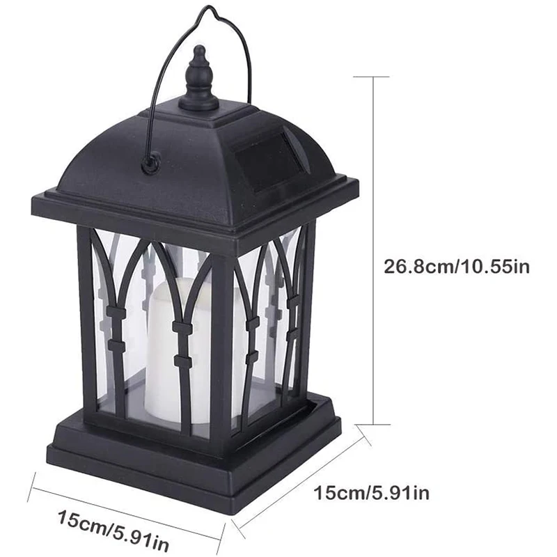 [Ретро дизайн фонаря] поставляется с имитацией свечи и фонаря, этот солнечный фонарь освещается теплым белым светодиодный мерцающими беспламенными свечами, что создает теплое свечение и очень декоративное.