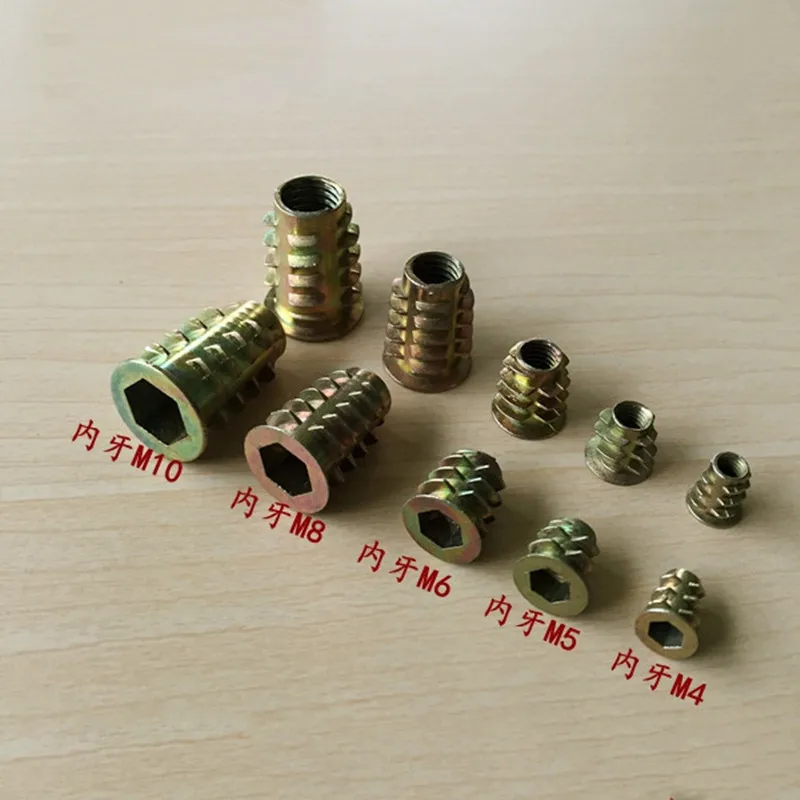 20 шт M4 M5 M6 M8 M10 резьба из цинкового сплава для деревянная вставка гайки с фланцем Шестигранная головка диска мебельных шурупов