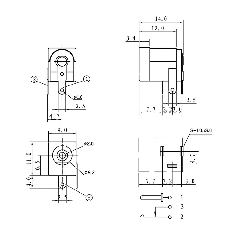 3. Работает со штекером с внутренним диаметром: 2,1 мм, внешний диаметр: 5,5 мм