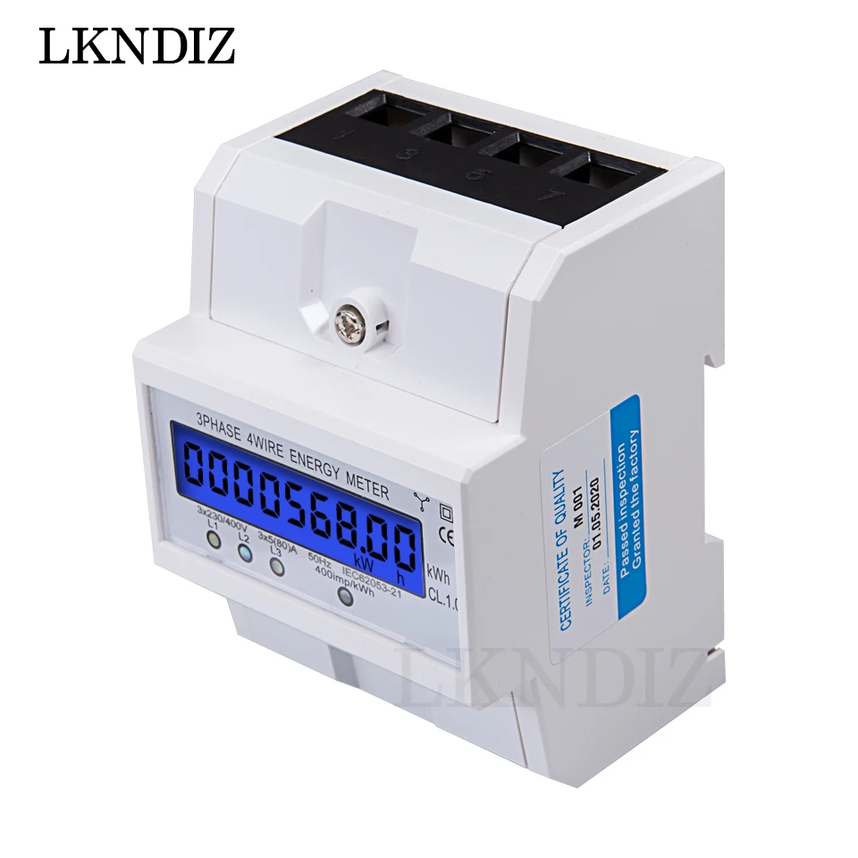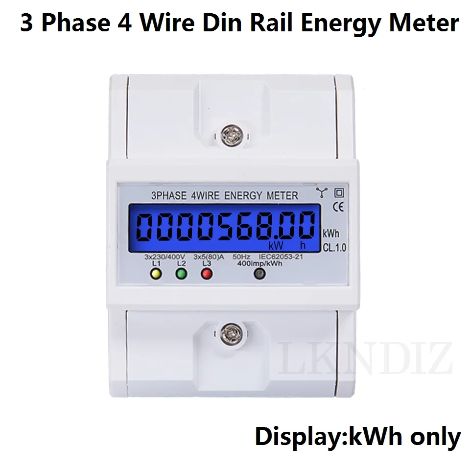 Din-рейка3 фазы 4 проводаЭлектронный ватт Потребляемая Мощность счетчик энергии ваттметр кВт · ч5-80A 3x22 0/380VЖК-дисплей с подсветкой переменного тока 50 Гц