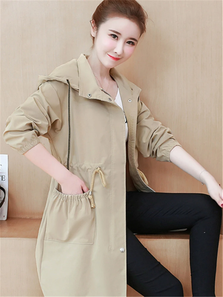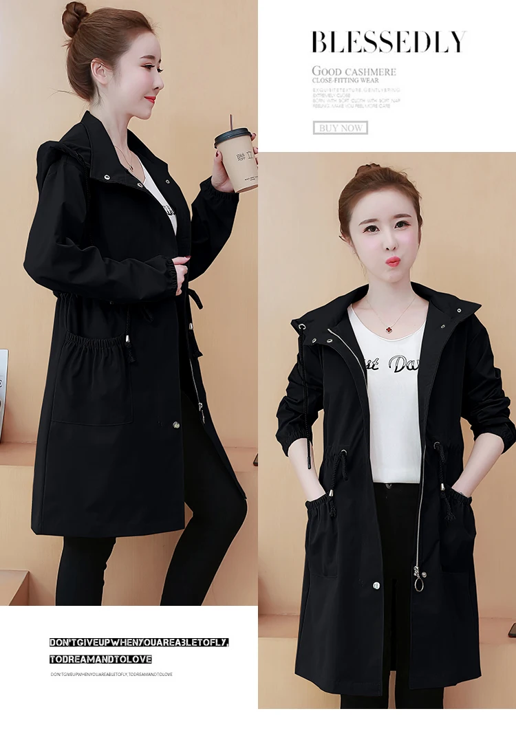 Новинка 2020 Длинная ветровка Весенняя женская куртка с капюшоном корейский