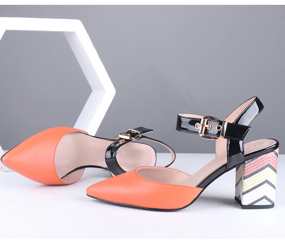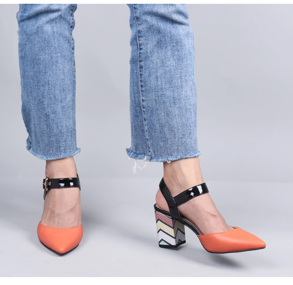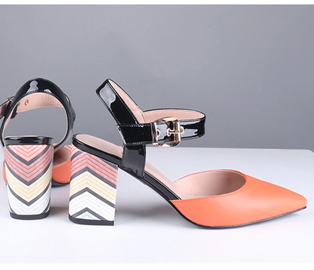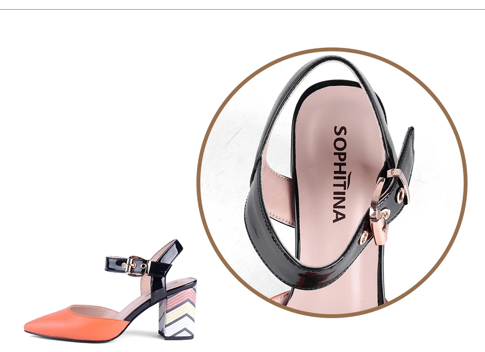 SOPHITINA/туфли-лодочки; Женская обувь; Элегантные туфли-лодочки ручной работы из натуральной кожи на квадратном каблуке в полоску; Модная женская офисная обувь; MC724