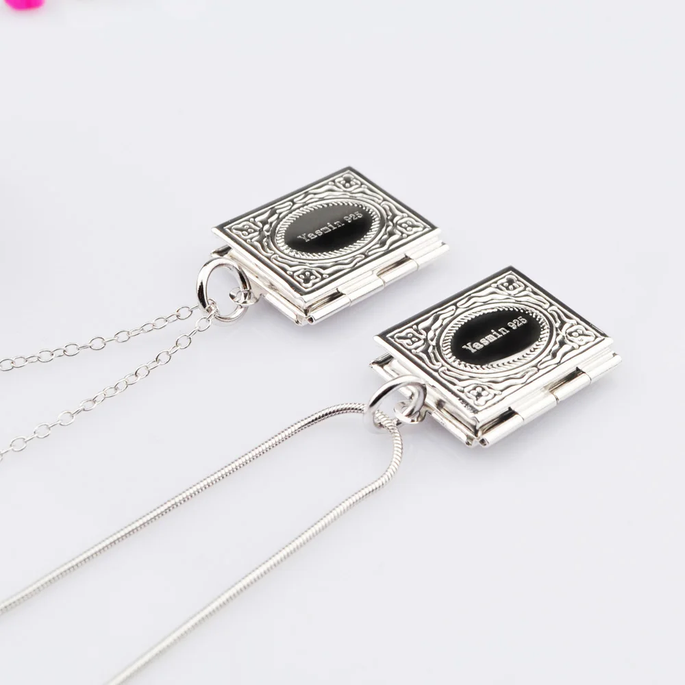 Реальный. Женское серебряное ожерелье с открытым квадратным кольцом и подвеской