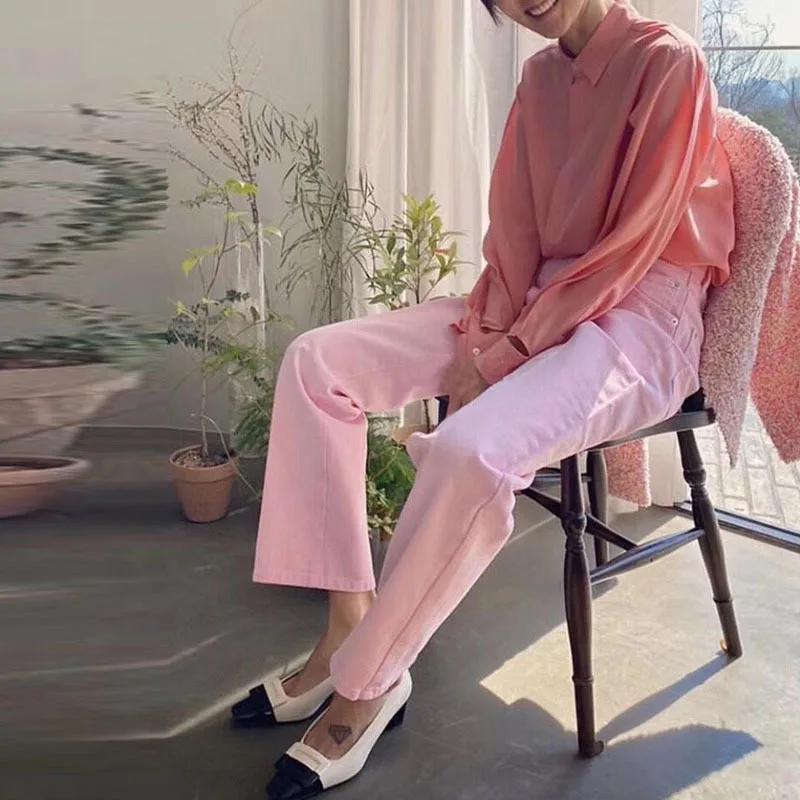 Классические женские джинсы винтажные с высокой талией для мам потертостями