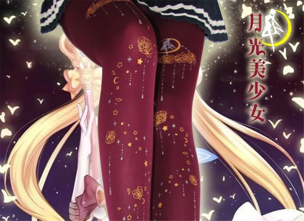 Колготки в стиле Лолиты для девочек; Колготки в готическом стиле; Колготки с принтом в стиле ретро; D059