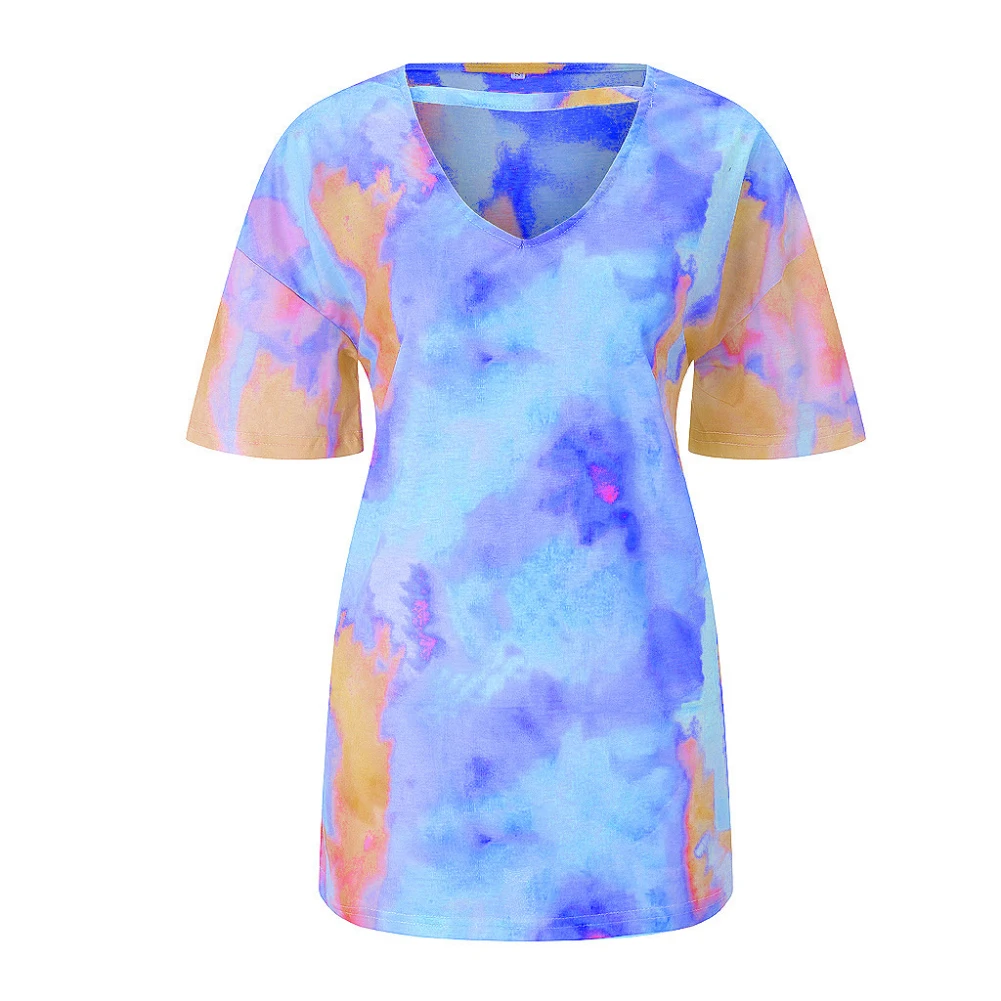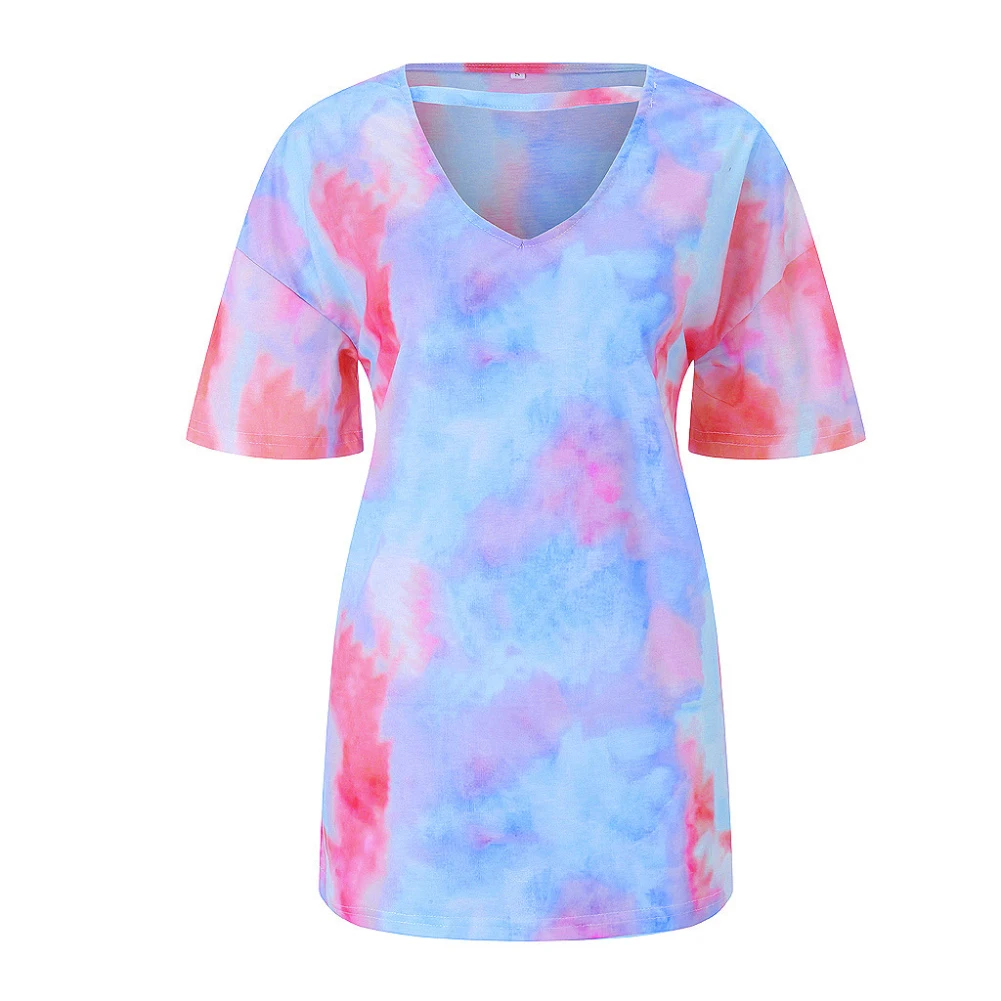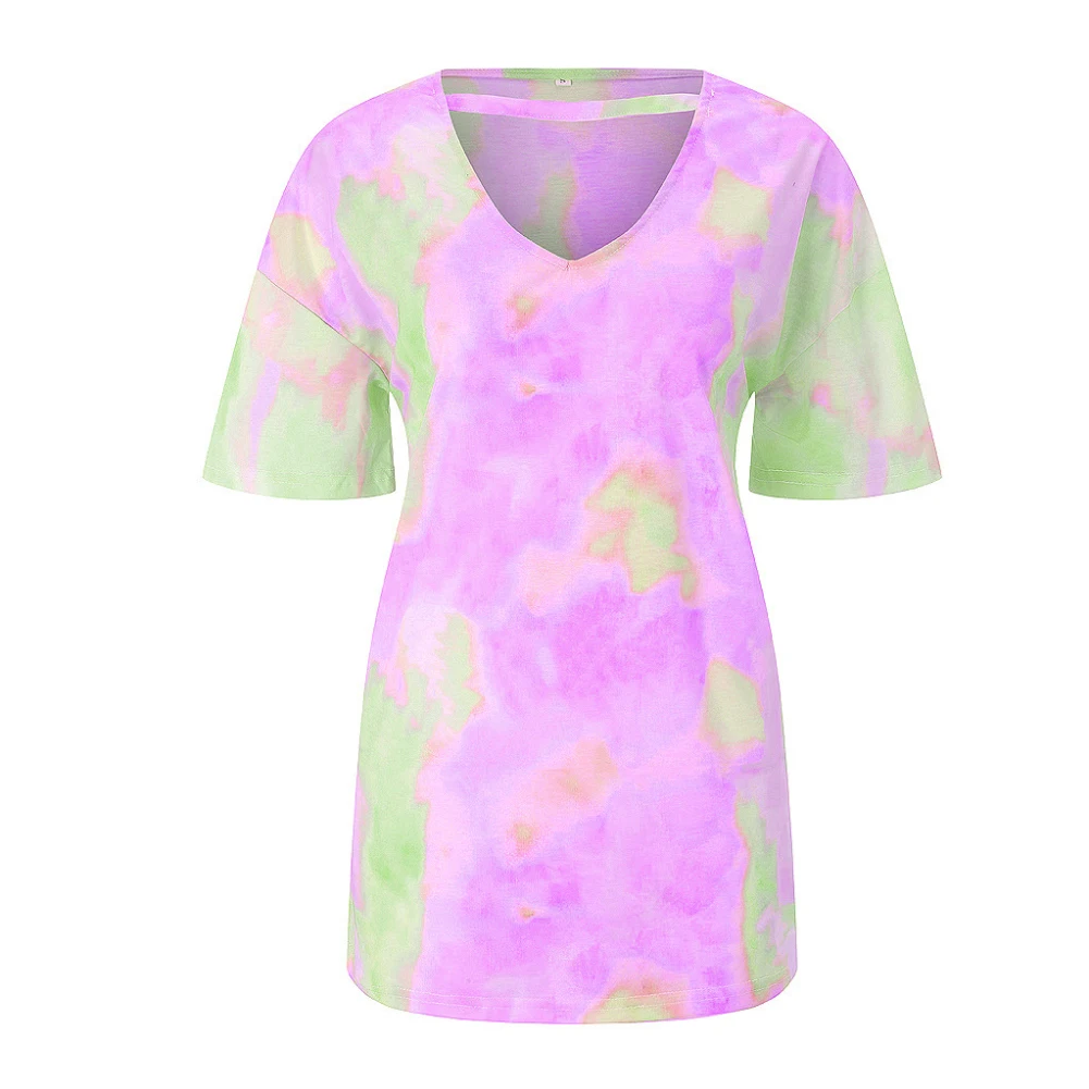 Он представлен с дизайном чокера и принтом красителя галстука, добавив Модные элементы к этой футболке.