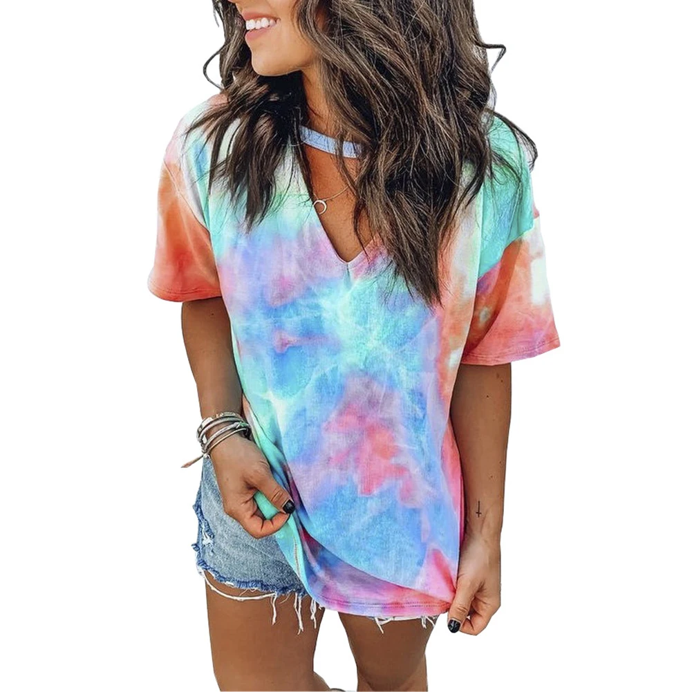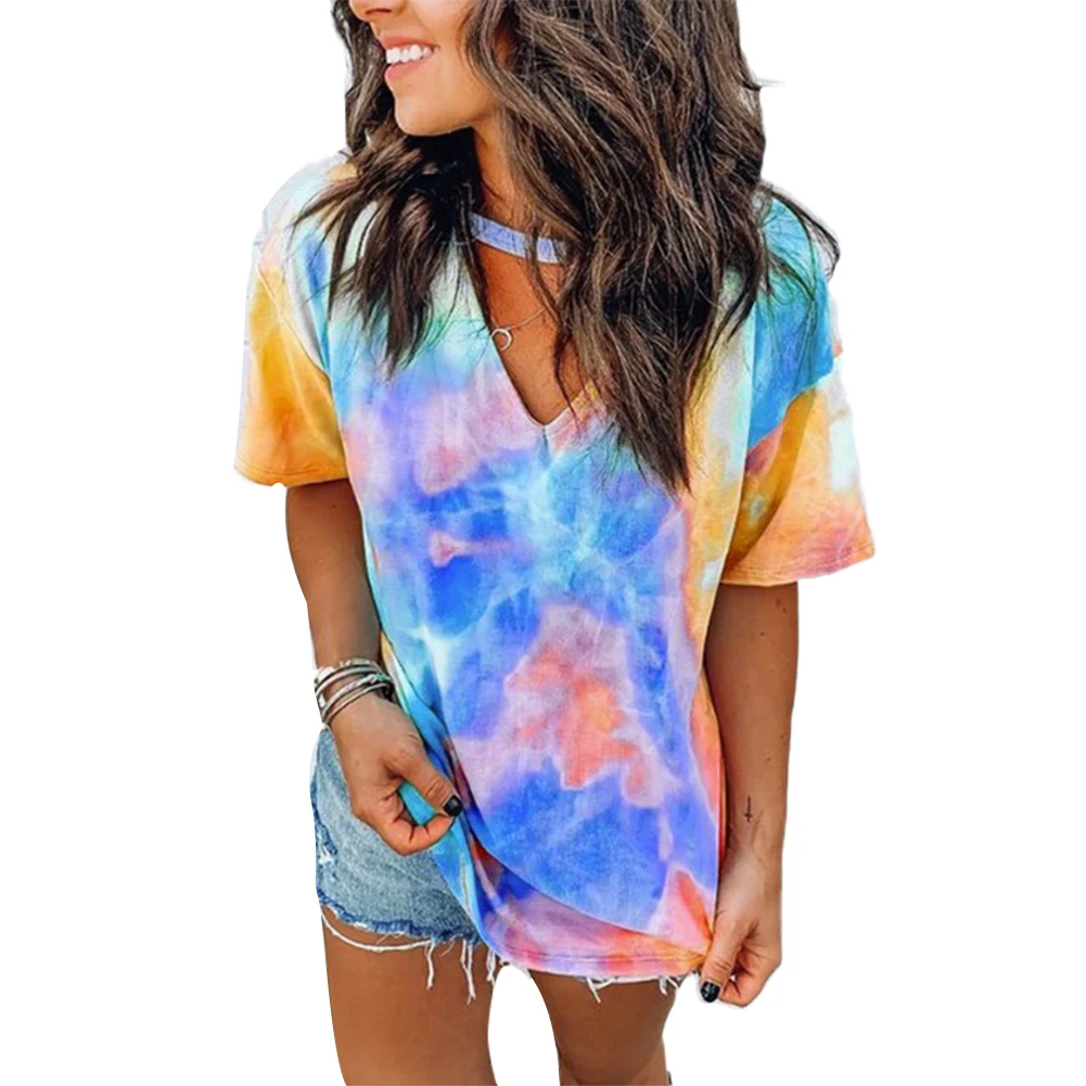Женская Повседневная Блузка с v-образным вырезом и коротким рукавом, свободная футболка