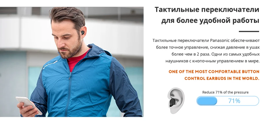 Тактильные переключатели Panasonic обеспечивают более точное управление при уменьшении давления в 2 раза. Один из самых удобных кнопок управления наушниками в мире.