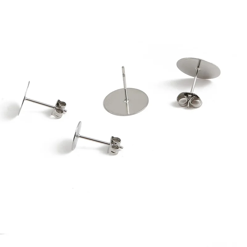 100 шт., пустые серьги из нержавеющей стали, шпильки для сережек, подходят для кабошона 3-12 мм, с вилкой для сережек, принадлежности для самостоятельного изготовления ювелирных изделий
