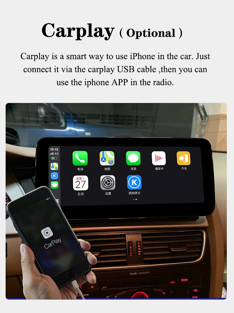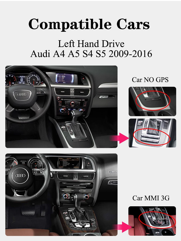 Audi A4/A5/A4L B8 2009-2016 левый привод автомобиля Нежное напоминание 1. Если у вашего автомобиля есть кнопка подушки безопасности, пожалуйста, добавьте 15 долларов США, чтобы получить кабель подушки безопасности. 2. Если у вашего автомобиля есть AMI порт, но нет AUX, пожалуйста, добавьте 10 долларов США, чтобы получить кабель AMI. 3. Наше стандартное радио не поставляется с функцией carplay, если вам это нужно, пожалуйста, оплатите 20 долларов США, чтобы получить его.