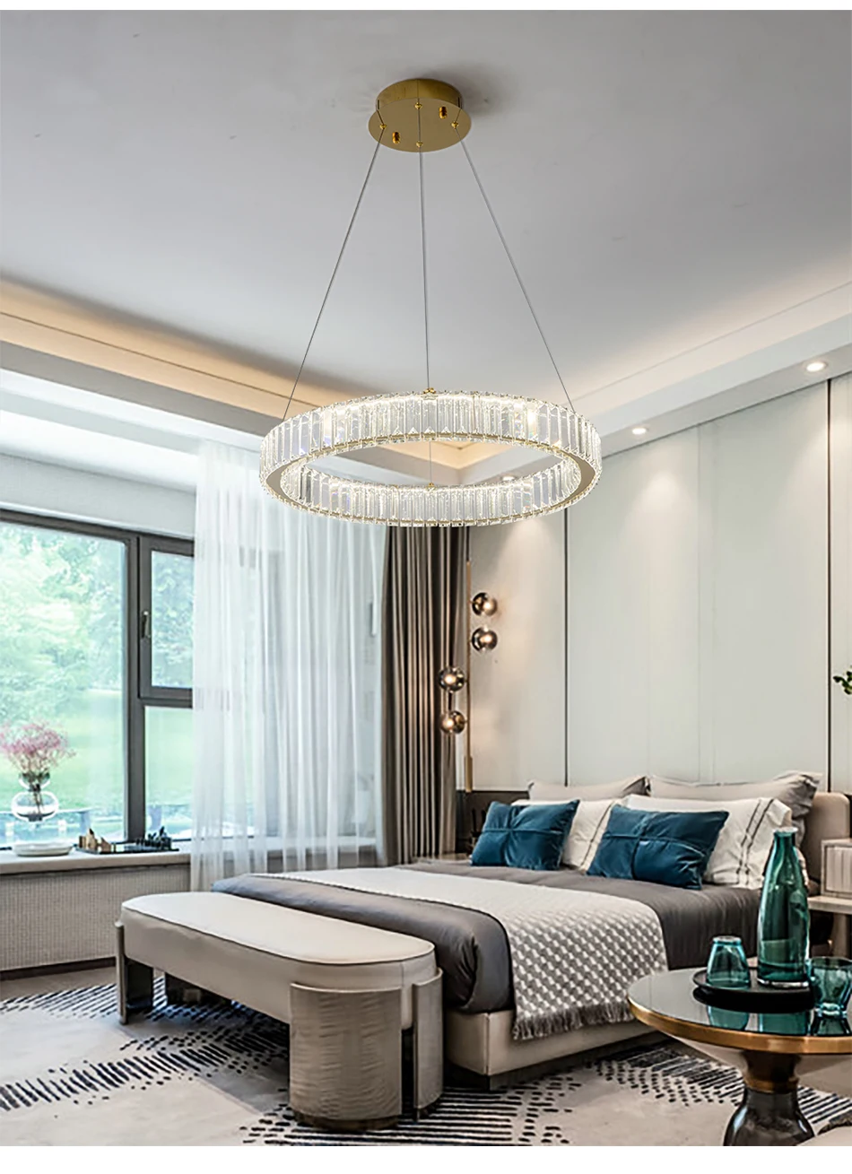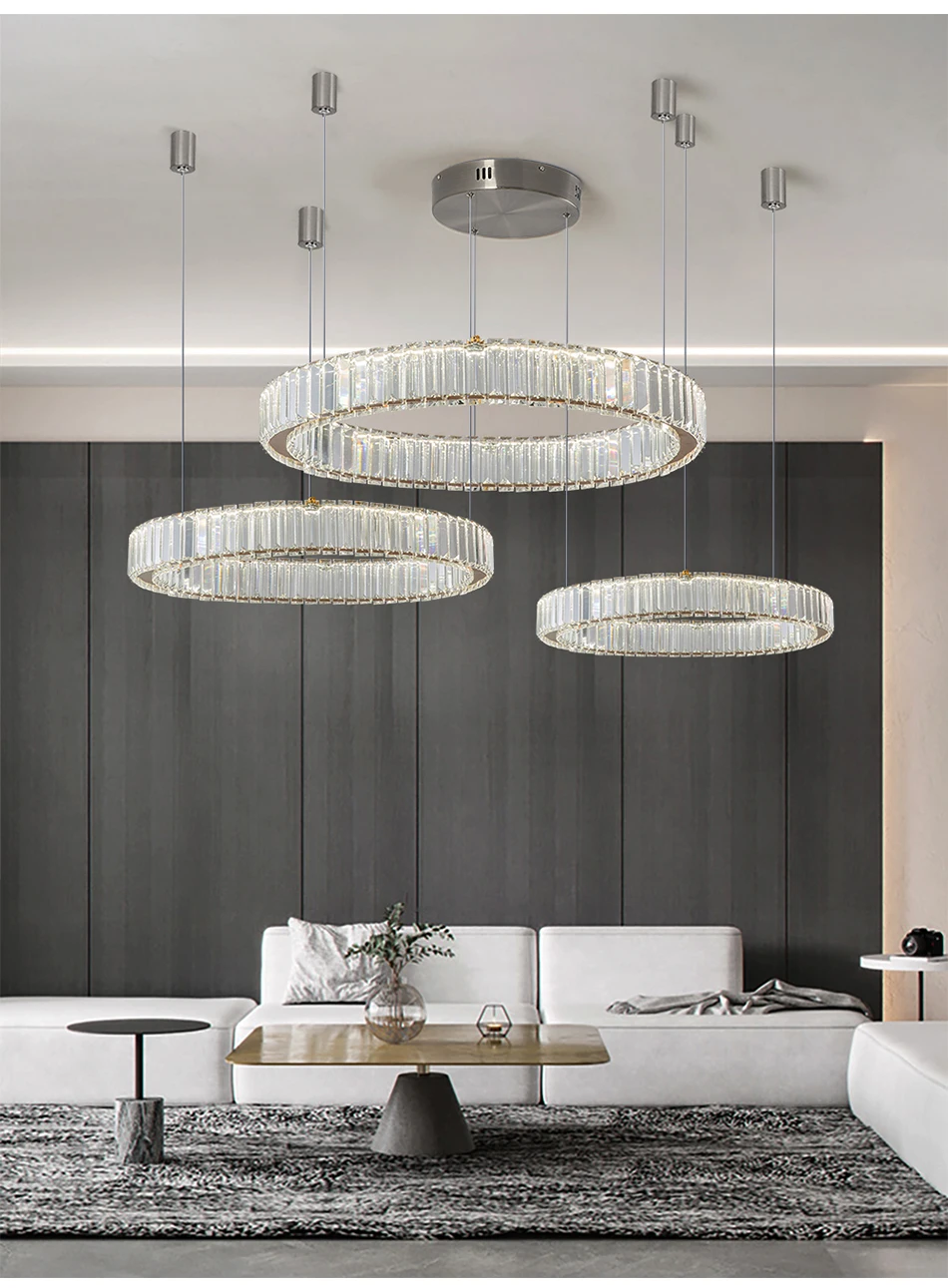 Современное кольцо кристаллы для люстры, освещение, золото/хром, нержавеющая сталь, Круглый круглый, двухслойный, освещение для живых проектов