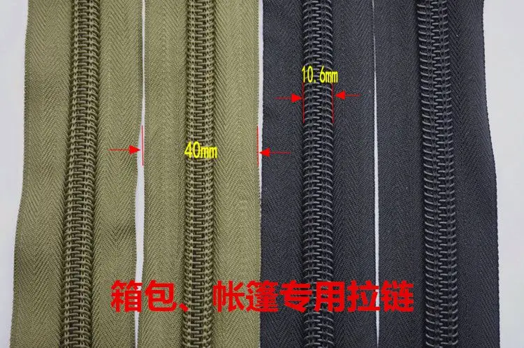 Название: нейлоновая молния с ползунками Материал: нейлон Цвет: черный, армейский зеленый, красный Размеры: 10 # Ширина ленты: 38-40 мм Ширина зуба: 9-10 мм Использование для: багажная сумка для рыбалки, рюкзак, Швейные аксессуары