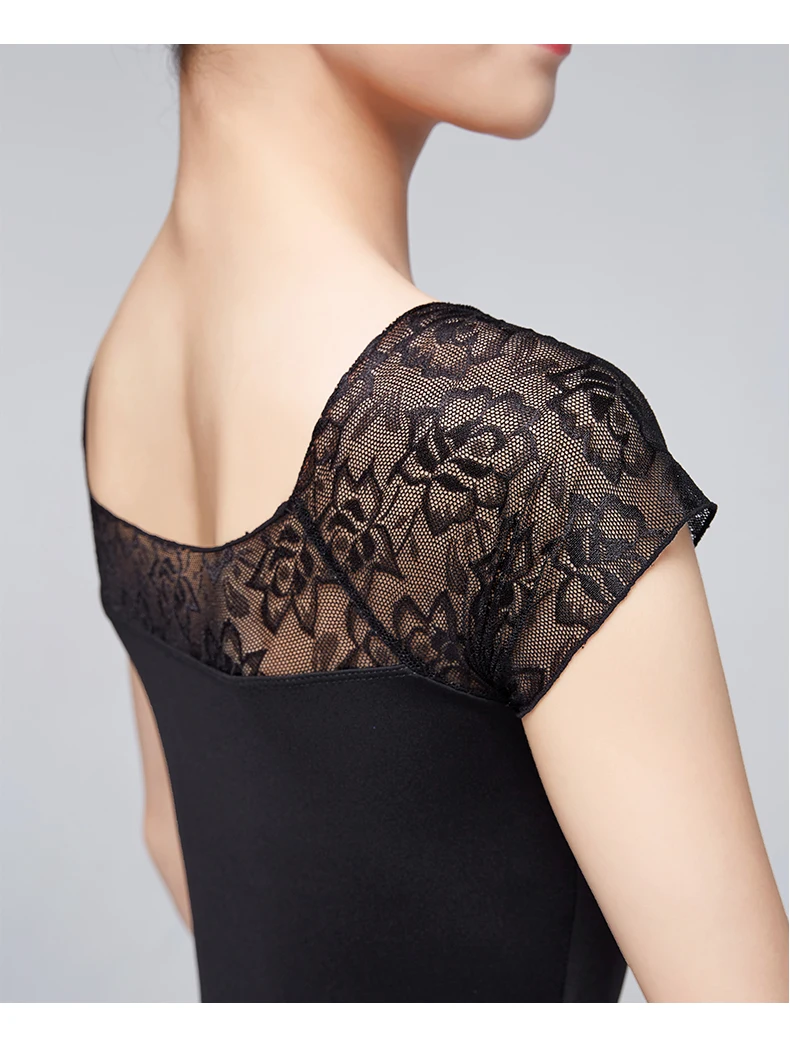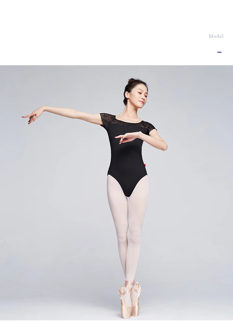 Ballet Leotards For Women Dance Costume Short Sleeve Lace Splice Nylon Leotard Adult Ballerina Clothes Black Dance Wear