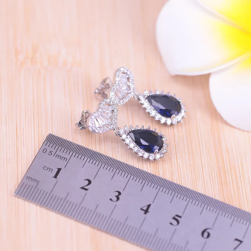 Большая капля воды, голубой камень, Стерлинговое Серебро 925 пробы, ювелирные изделия для женщин, свадебные ювелирные изделия, серьги-гвоздики, кольцо, ожерелье, браслет, набор в магазине