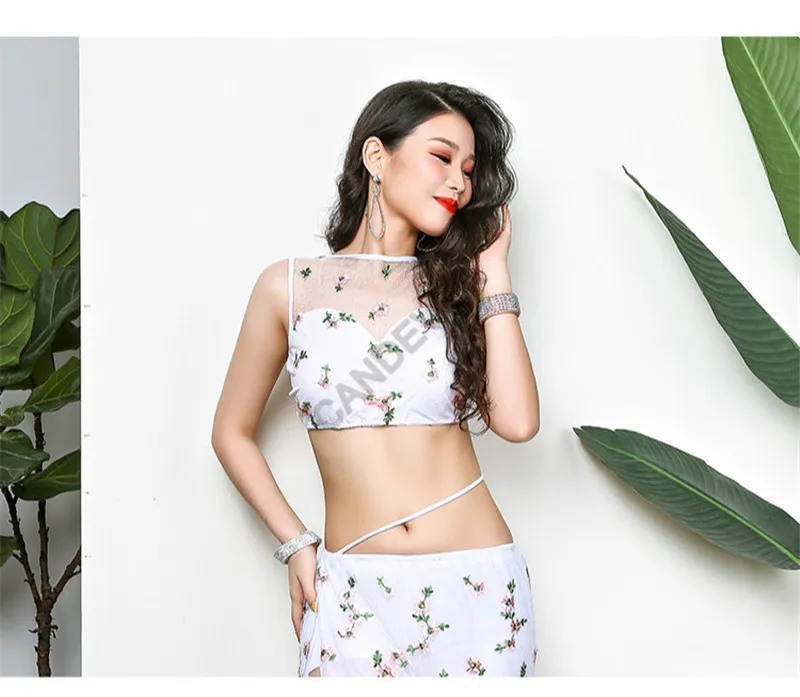Кружевной сетчатый топ, раздельная длинная юбка, набор костюма для танца живота, представление, восточные танцы, профессиональная тренировочная одежда, индийский костюм