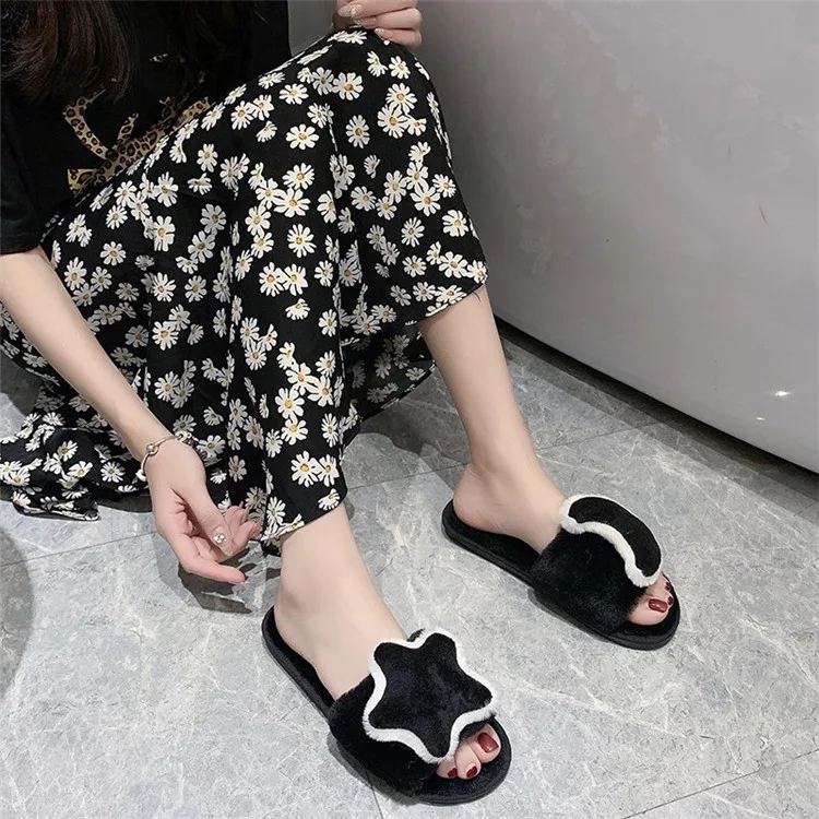 Шлепанцы женские со стразами и лисой Сланцы на плоской подошве с заклепками
