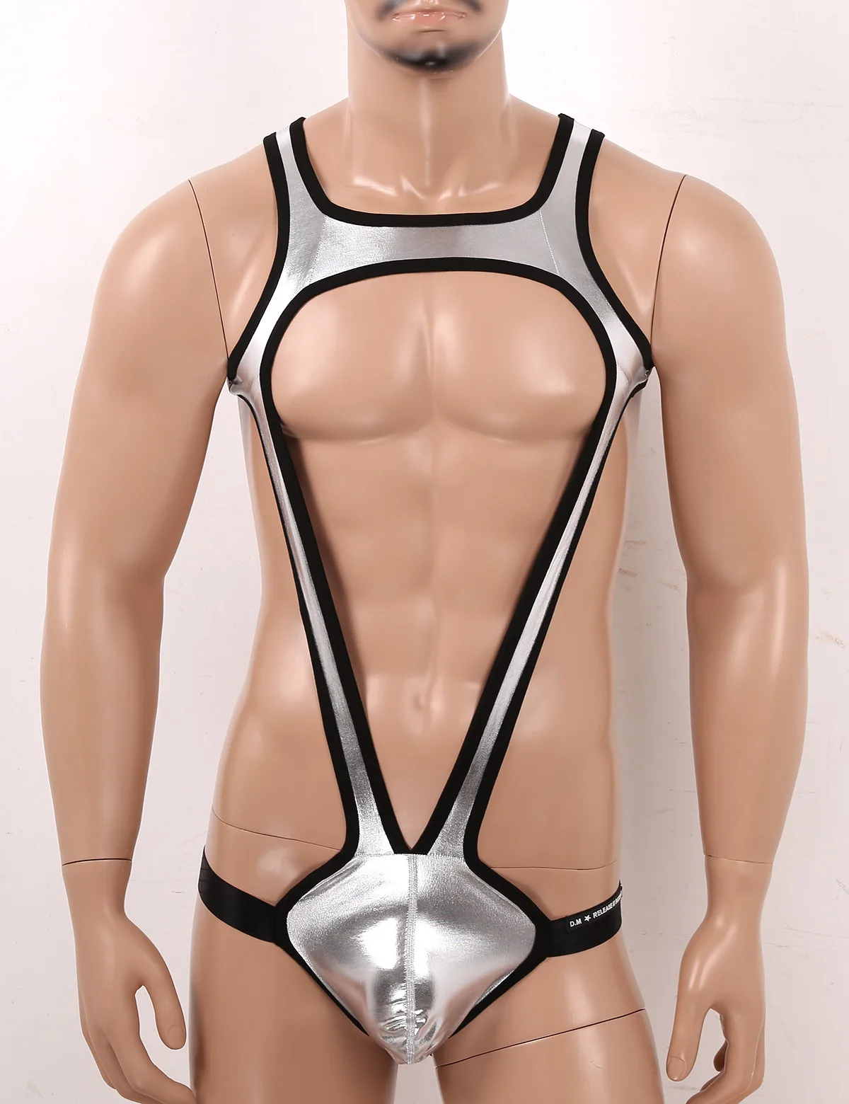 Мужской цельнокроеный Блестящий металлический бандаж, Борцовский купальник, Манкини, боди, нижнее белье.