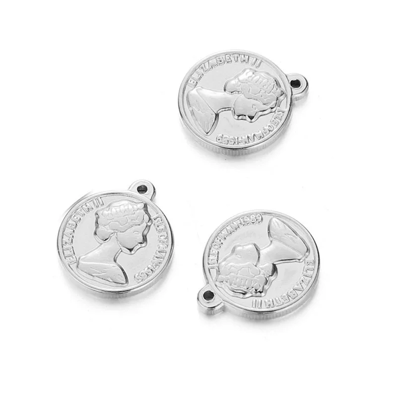 5 шт. из нержавеющей стали портретная королева елизания монета Подвески антикоррозийный маленький круглый подвесной амулет аксессуары для изготовления ювелирных изделий
