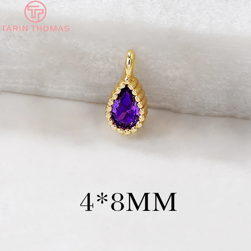 Материал: латунь с циркониемЦвет: 24K золотой цвет, фиолетовый цветРазмер: 4x8 мм отверстие 1 ммКоличество: 10 шт.