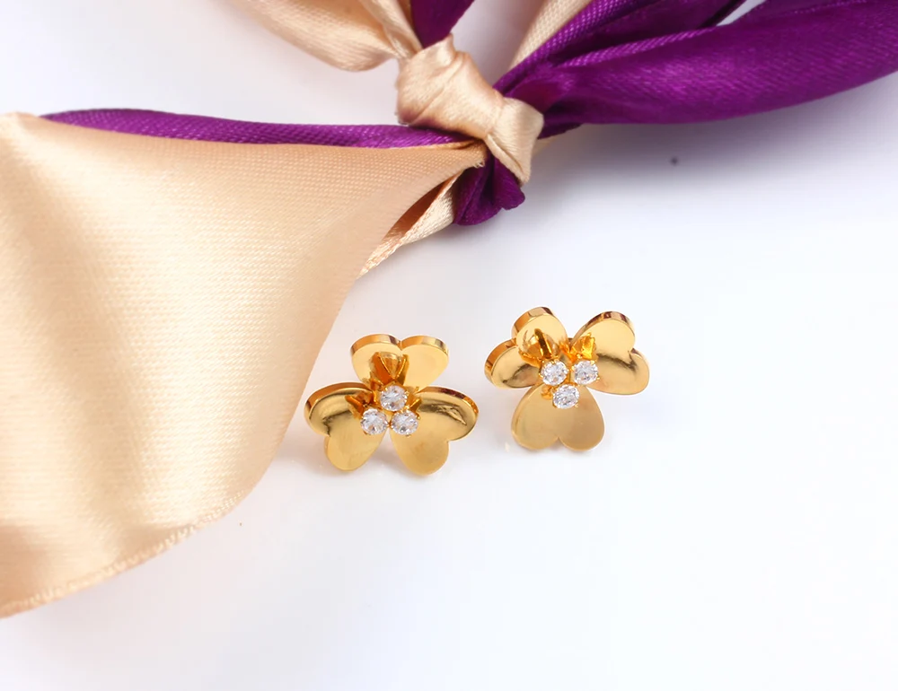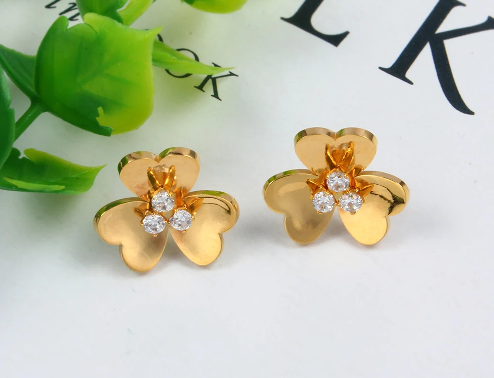 Серьги-гвоздики из нержавеющей стали Lucky Shamrock, серьги золотистого цвета с цветком в три листа с цирконом, ювелирные изделия с клевером, женский подарок настоящей любви, высокое качество