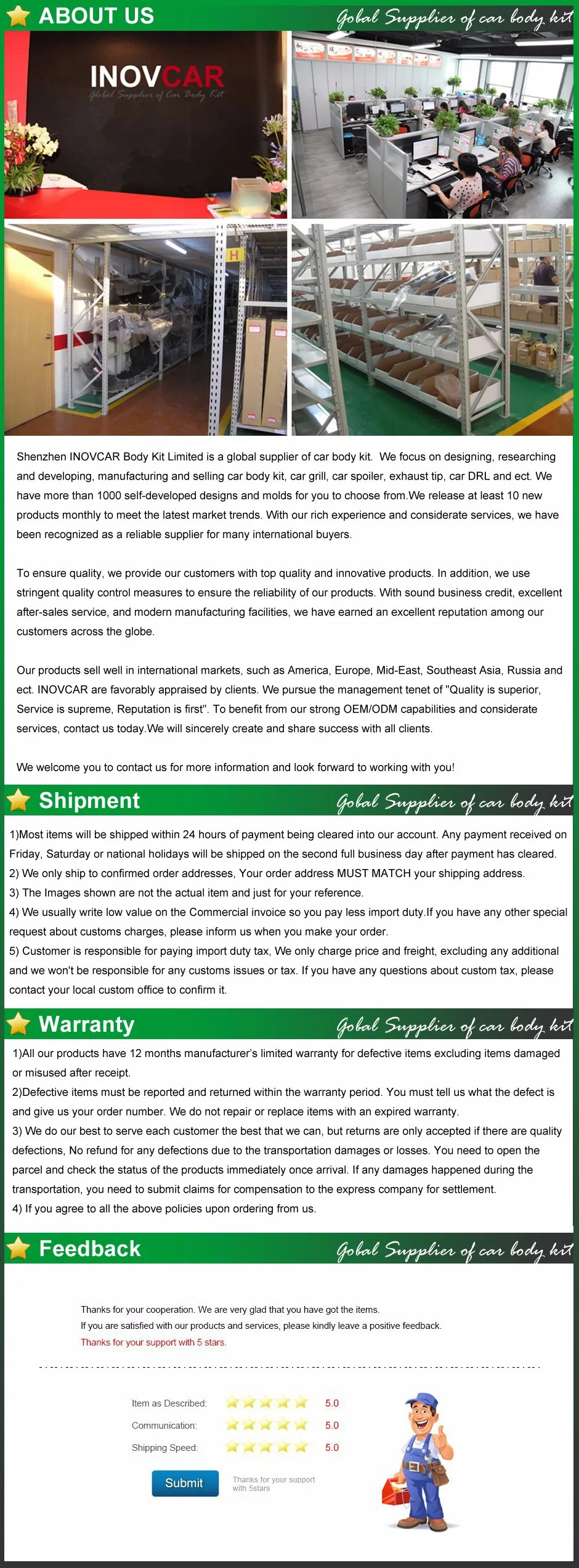 Магазина INOVCAR ONLINE STORE работает с 07.07.2015. его рейтинг составлет 89.66 баллов из 100. В избранное добавили 351 покупателя. Средний рейтинг торваров продавца 4.6 в продаже представленно 709 наименований товаров, успешно доставлено 347 заказов. 58 покупателей оставили отзывы о продавце.