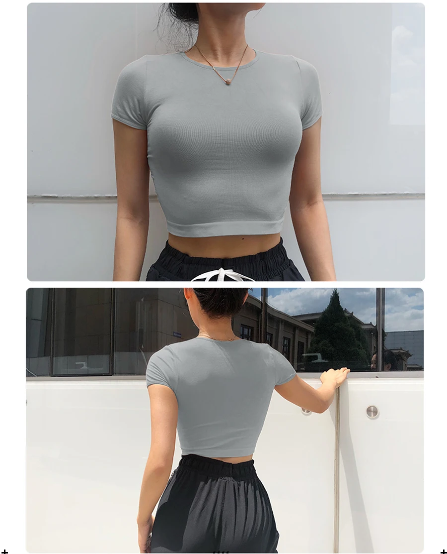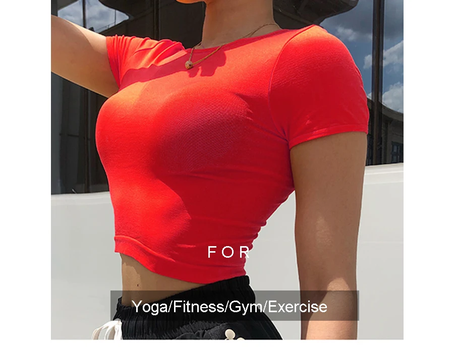 BINAND нейлоновый спортивный короткий топ, тонкий топ для йоги, Женская быстросохнущая рубашка для фитнеса, рубашка для йоги, футболка для спортзала, плотная футболка для бега с коротким рукавом