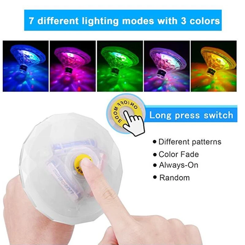 Красочный алмазный светильник для ванной, игрушки, плавающий подводный светодиодный вечерние светильник, светящийся показ, плавательный бассейн, пруд, гидромассажная Ванна, спа-ванна, лампа