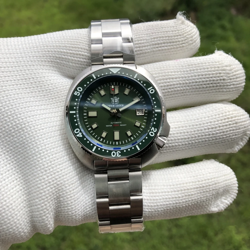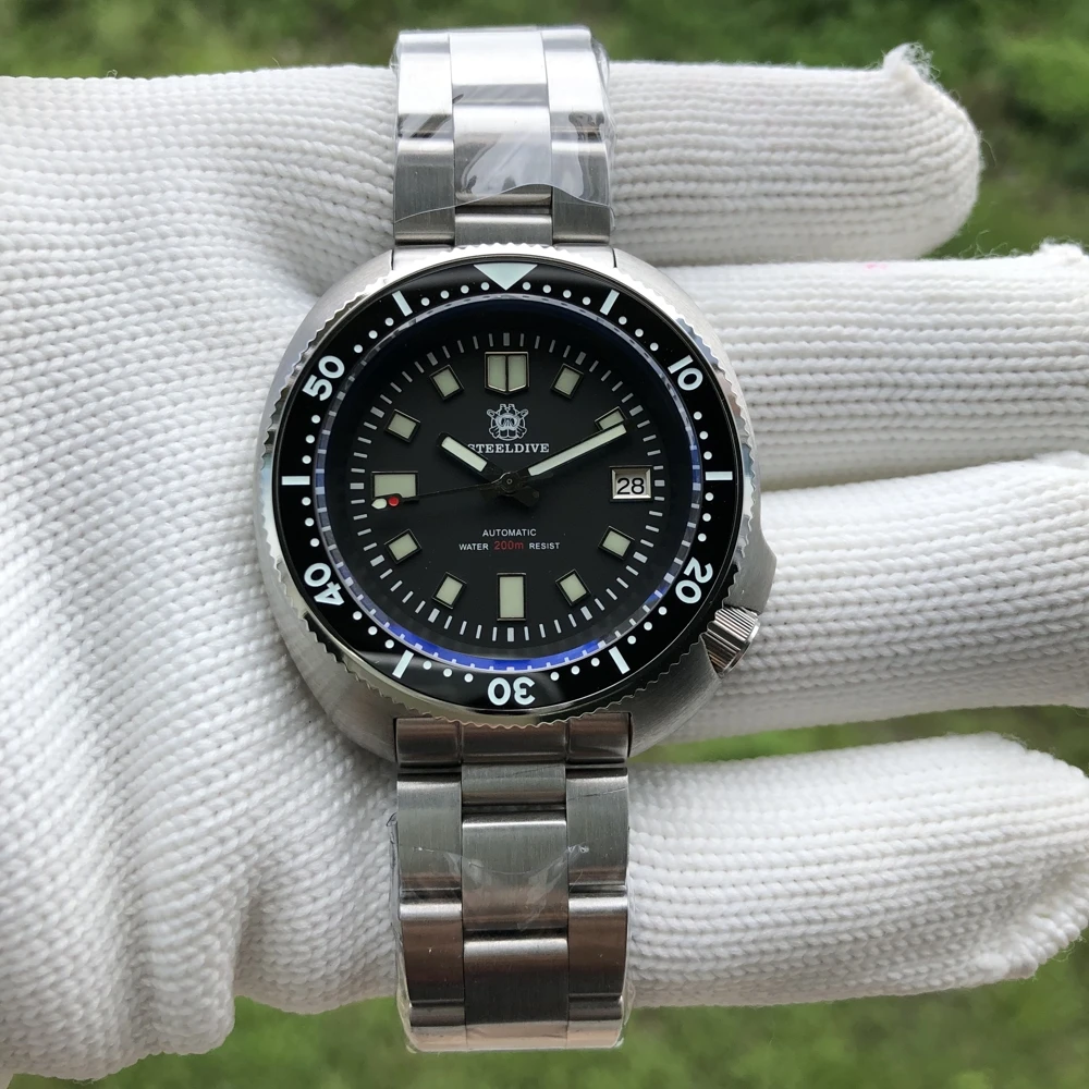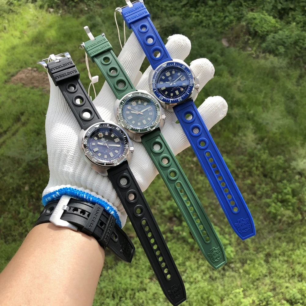 SD1970 Steeldive Резиновая лента 44 мм Мужские часы NH35 для дайвинга с зеленым керамическим ободком