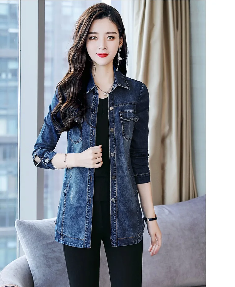UHYTGF 5XL размера плюс джинсовая куртка Женская мода Карманный корейский Повседневный Весна Осень джинсовые пальто дикие элегантные женские куртки 1078