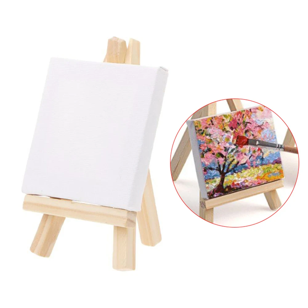 Каждый набор содержит 5 белых пустых холстов и 5 деревянных мольбертов для рисования.