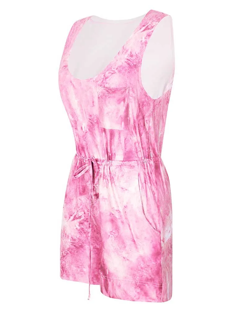 Женский короткий комбинезон в горошек свободный пляжный с рукавами фонариками и