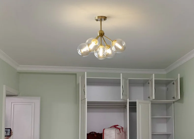 Современный простой светодиодный светильник-люстра Материал: медь + стекло Светильник источник: G9 (в том числе лампы) Размер: 3 головки-диаметр 33 см 5 головок-диаметр 44,5 см Напряжение: от 90 В до 260 В (мы работаем с вашей страной) Применение: гостиная, спальня, зал, лобби, прихожая, проход, балкон и т. Д.