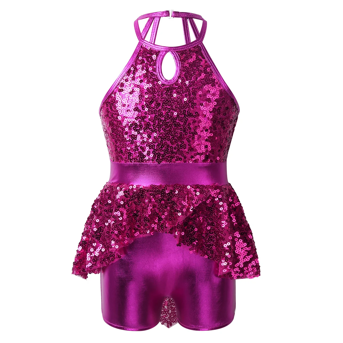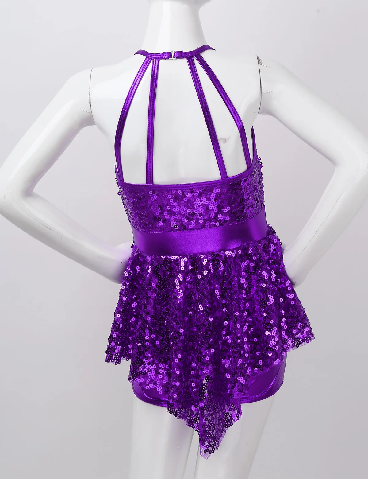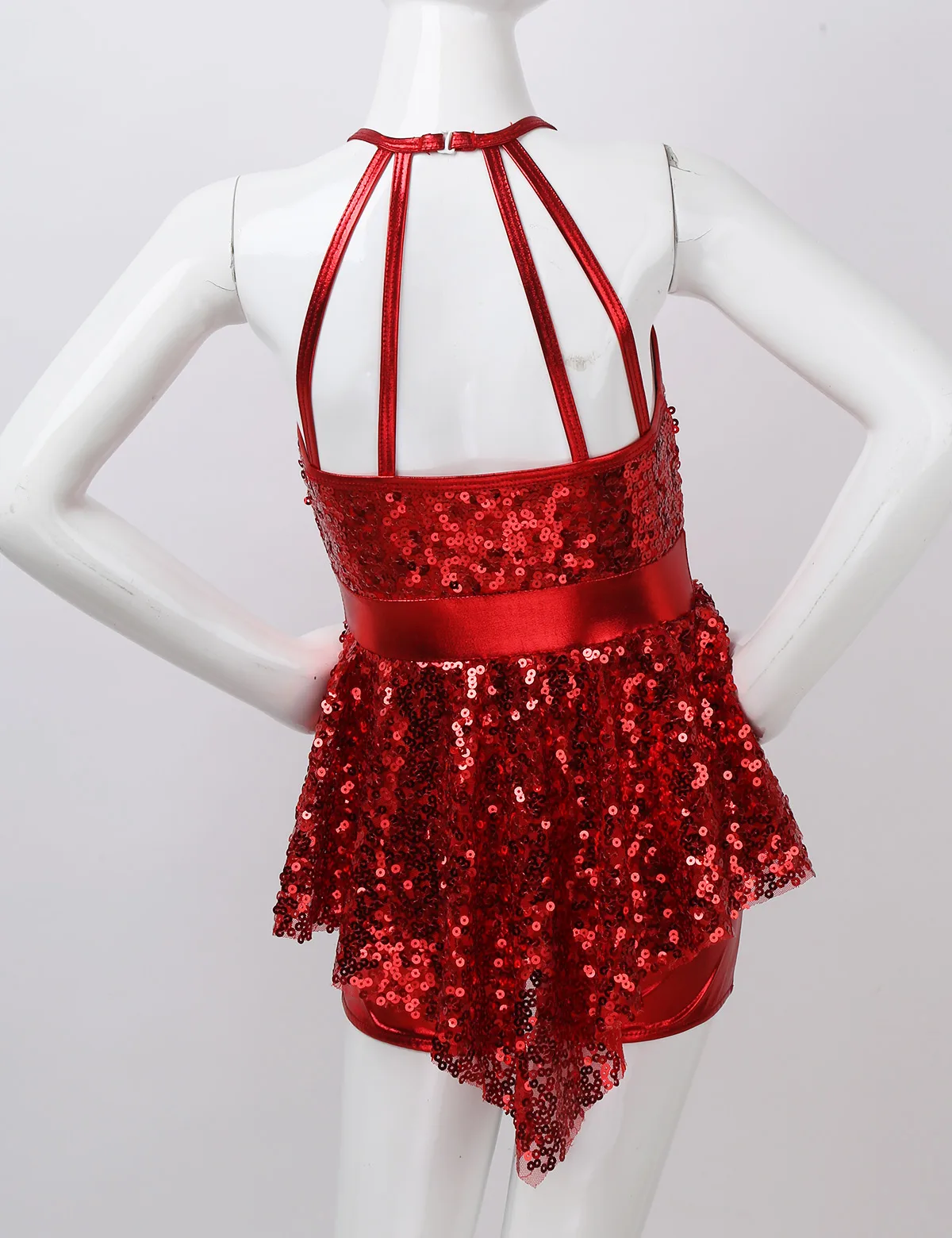 Детская танцевальная одежда для балета без рукавов с блестками и лямкой на шее для девочек от 6 до 14 лет короткое платье для современных лирических танцев