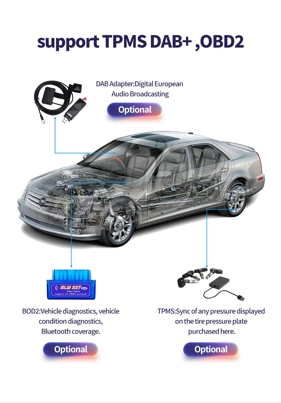 Multi-touch Capacitive 1024*600 Screen Support Android Mobile Phone and iPhone Tire Pressure Monitoring System, Support External TPMS and Built-in TPMS High Solution & Speed,Operated by Touch Screen of DVD Support Download,Install,Manager APPS from Apple Store Built-in WIFI Internet Support 3G/4G Dongle Google Map,Online,Sygic,IGO Map,etc. Built-in RDS Function, RDS Station Display, TMC Function optional Reading Disc faster, Support RM, RMVB format video Support Max. 32G USB/SD,HD 1080P Video Display Bluetooth Phonebook function Original Steering Wheel Control Various Wallpaer/Logo Support13~18 languages