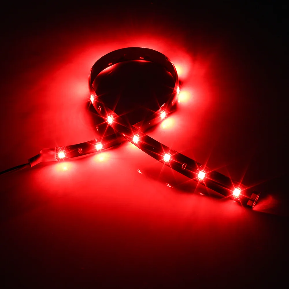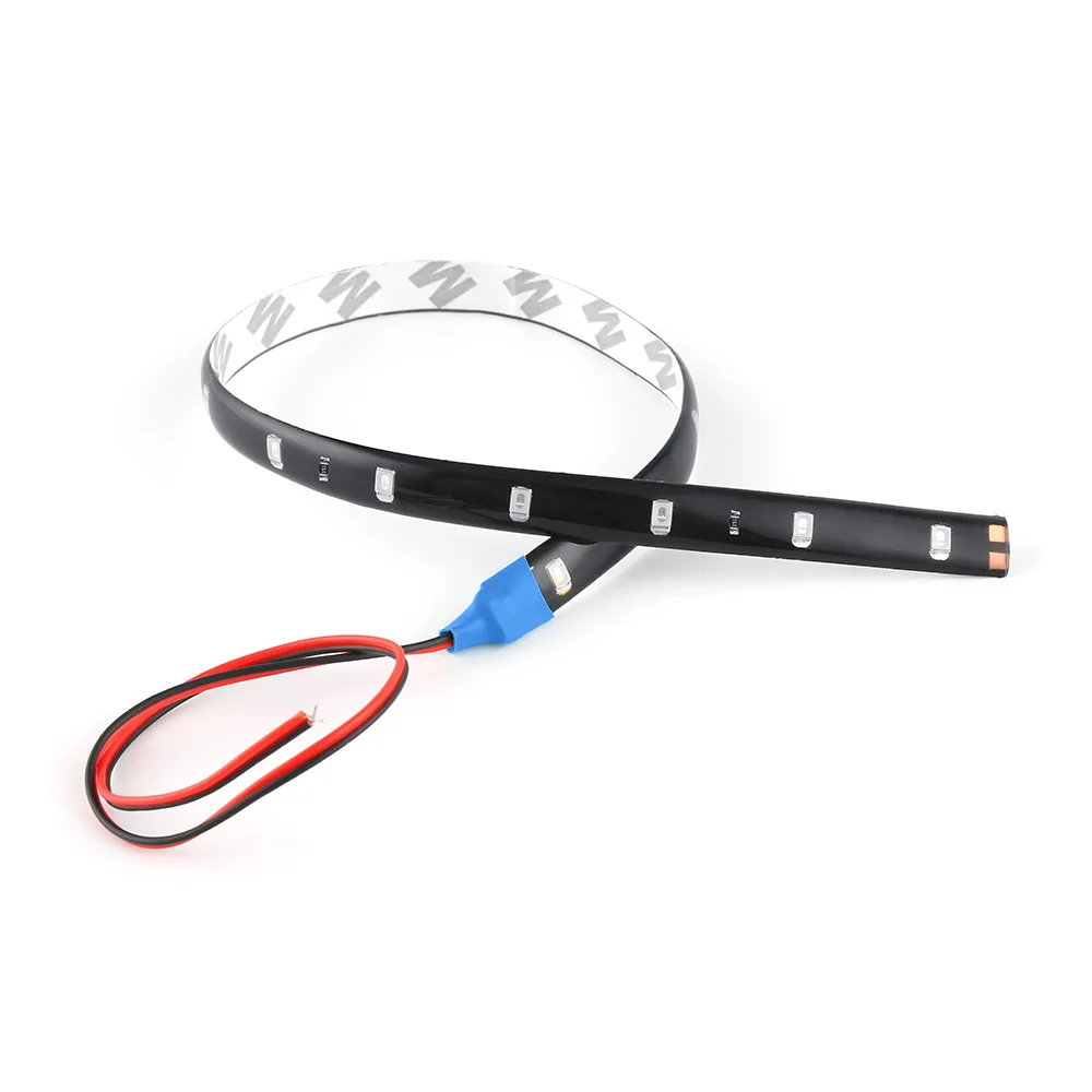 Features:Water-proof flexible LED stripSelf-adhesive back with adhesive tapeContinuous length, packed with 30cm lengthSelf-adhesive back with Adhesive tape for secure and easy applicationLED Type: High Quality 3528 SMD LED, high intensity and reliabilityUltra-bright but running at low temperatureDc-plug already soldered on the connector, ready to be plugged in and workingFlexible ribbon for curving around bendsCompletely smooth and even light spread, solving the uneven luminous problem Low power consumptionApplications:Light up colorful home life, DIY household lights for hallways, stairs, trails, windowsArchitectural decorative lighting, boutique atmosphere lightingWidely used in the illumination of emporiums, shopping malls, meeting room, factory, clubs, hotel, light box, and performancesDecorative lights for holiday, event, show exhibitionApplicable for automobile and bicycle decoration, border or contour lighting.Specifications:Color: White / Red / Blue / Yellow / GreenWorking Input Voltage: 12V DCSuperbright 3528 SMD top LED, high intensity and reliabilityLED Quantity: 15 LEDsView angle: 180Waterproof: YesLuminous Flux: 144 Lumens / 30cm (11.8 ")PCB: BlackLength: 30CMSize: L30cm (11.8 ") x W1.0cm x T0.20cmInstallation Notice: If LED Light can not be lighted up, please change positive (+) to negative (-) (Swap the right and left wires)Package included:1 x 30Cm Car LED strip