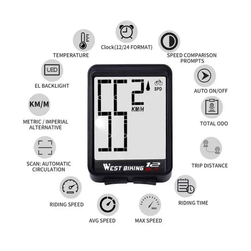 13 Functions: AVG SPEED, MAX SPEED, RIDING TIME, TRIP DISTANCE TOTAL ODO, TOTAL ODO, METRIC / IMPERIAL