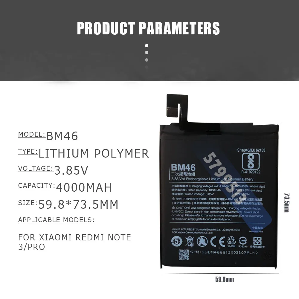 Новый оригинальный аккумулятор большой емкости BM46 4000 мАч для Xiaomi Redmi Note 3 note3 Pro/Prime мобильный телефон, сменные батареи