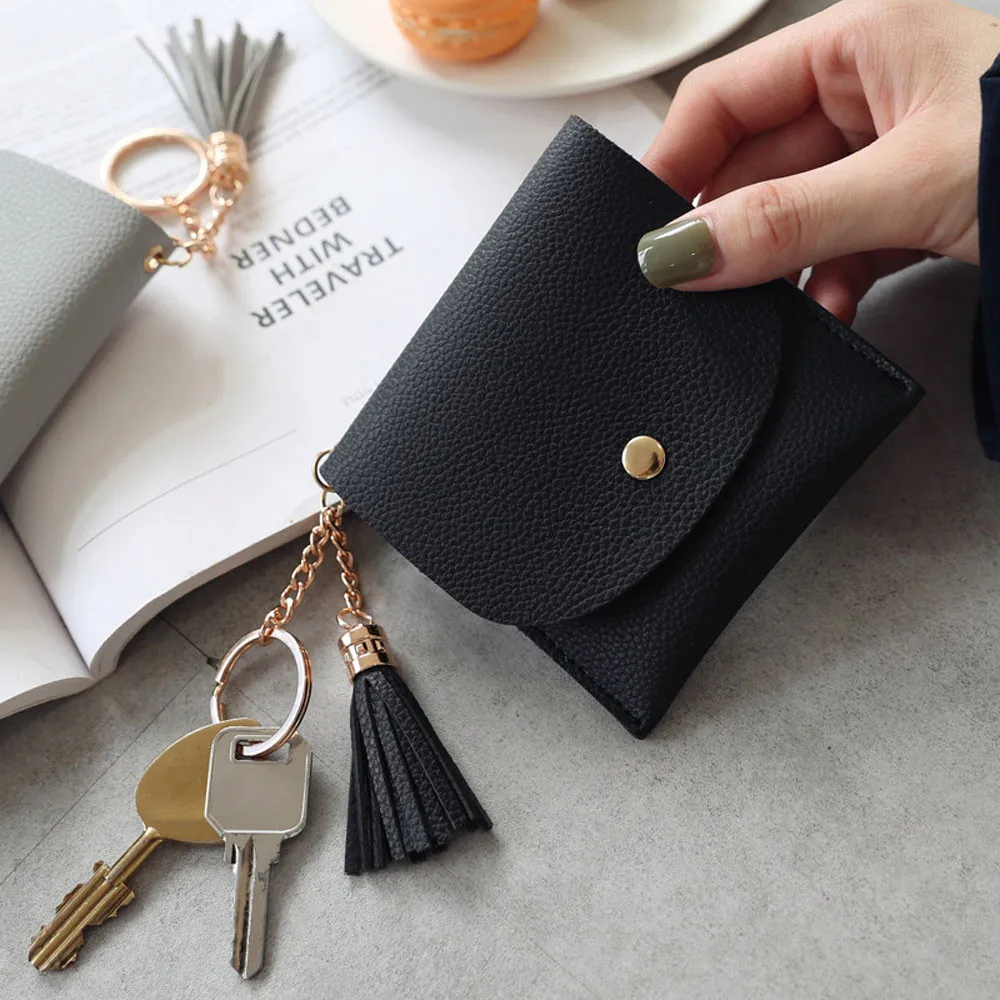 Женский простой короткий кошелек с кисточками, кошелек для монет, держатель для карт, сумочка