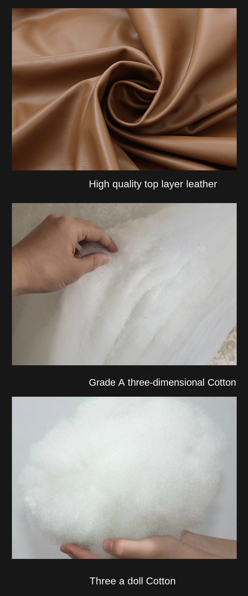 Материалы: кожа, 3D хлопок, хлопковая фигурка, губка высокой плотности, металл
