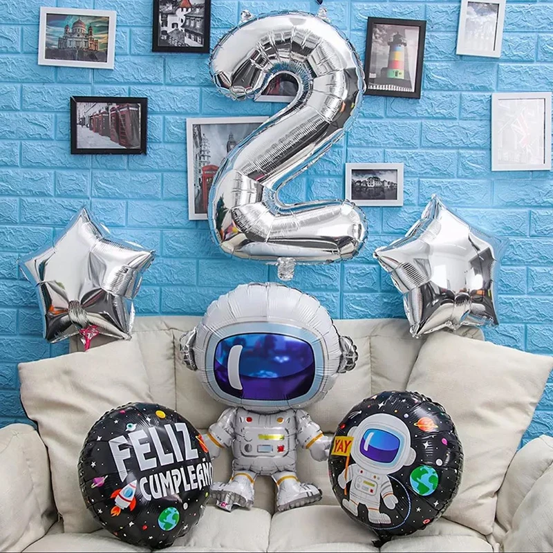 Дизайн: космонавт/ракетный корабль/номер Воздушный шар космонавта: 85x58,5 см Круглый воздушный шар: 18 дюймов Воздушный шар со звездами: 18 дюймов Шарик в виде цифры: 32 дюйма Если вам нужен воздушный шар с одним номером. Вы можете найти в нашем магазине