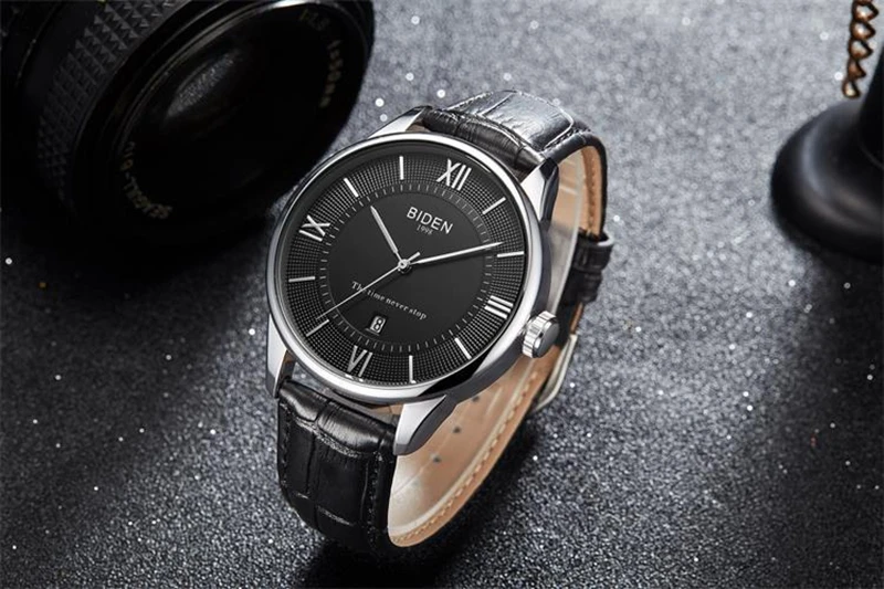 Бренд Biden, мужские модные бизнес японские кварцевые часы с кожаным ремешком, 3 АТМ, водонепроницаемые мужские часы с календарем, лучший подарок