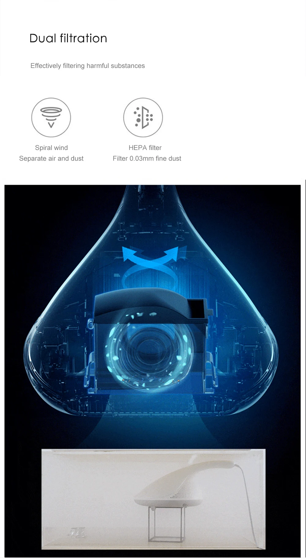 -Он имеет Мощное всасывание для всасывания грязи, клещей, зубов и т. д.