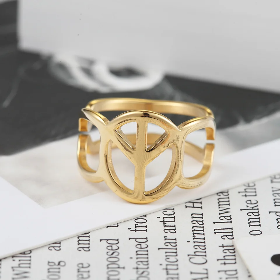 Кольцо из нержавеющей стали для женщин, ювелирное изделие, знак мира, кольцо золотого и серебряного цвета, модный подарок на палец, Размер 6 7 8 9