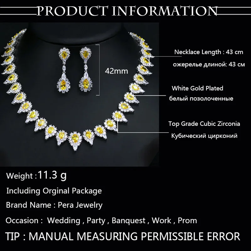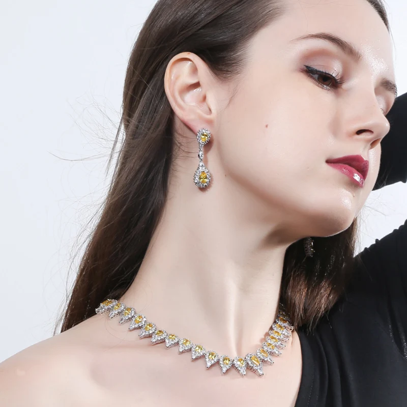 Pera Calssic в форме капли воды желтый камень CZ Свадебный круглый чокер ожерелье серьги набор украшений для женщин J0548