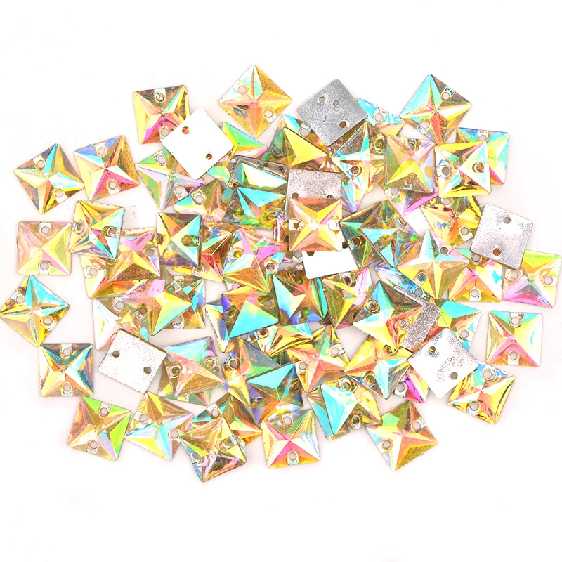 JUNAO 10 мм блестящий красный AB квадратный шитый рукоделие горный хрусталь плоская смола