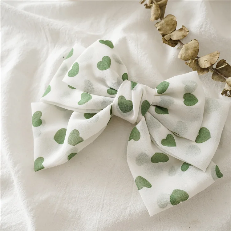 Новые корейские летние шифоновые заколки с принтом сердца и большим бантом для волос, женские модные аксессуары для волос, заколки для волос