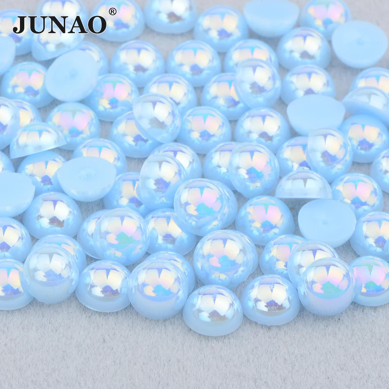 JUNAO 2 4 6 8 10 12 14 мм Блестящий Аквамарин AB полукруглая Имитация