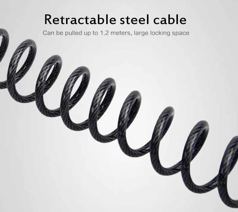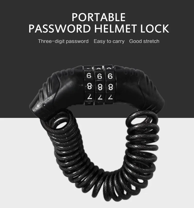 Испытанный замок шлема. Замком и 1,6 м гидроизоляционной свертываясь спиралью плетеный стальной трос. Вы можете прикрепить один или два шлема или даже шлем и куртку к велосипеду. Все детали покрыты рукавом, чтобы вы не повредили хром вашего велосипеда или шлема.